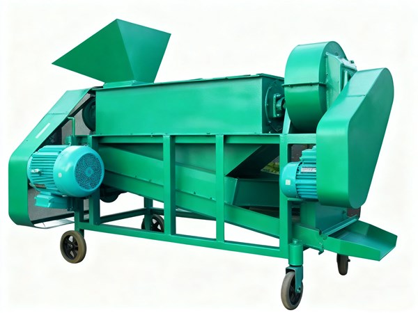 This machine primarily consists of a corn cob threshing system, a screening system, and a fan.
