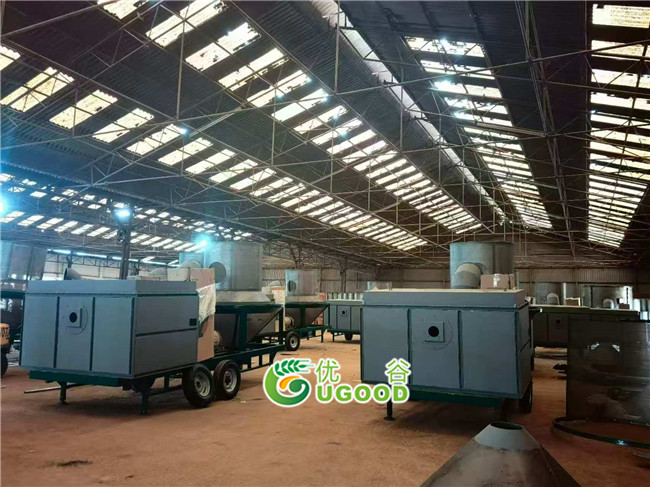 The whole system of portable multi-grain dryer can be customized with dual heat sources (electric heating and diesel heating and the mode is switchable). It mainly includes drying machine, towing frame, two tires, 1t capacity hopper (with on-off valve & temporary storage function) and automatic pacakging and bagging scale.